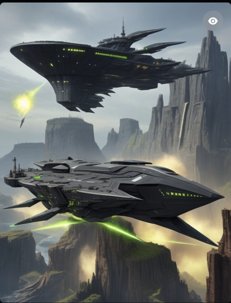 “How are we going to get on the ship?” Tia asked as the group began packing provisions for the assault. “We commandeer one of their smaller ships,” said Bitoku. “We have someone get spotted and then hide, and they should send out a ship to drop some robots off. When the robots are getting off we’ll take them out and take over the ship, and then fly it up to the mothership.” “I don’t think any of us know how to fly a ship, let alone an alien robot one?” Said Mia. “Vik’s smart, he should figure it out,” replied Bitoku. “Wow, no pressure,” Vik said, scratching his head nervously. Bitoku looked at Malgrum, who was standing in a corner with Ryla, his arms crossed. “C’mon Malgrum, it’s time to move.” The group left their encampment, with Malgrum scoffing at Bitoku before leaving his spot begrudgingly. They walked to the main square, their guns at the ready. “So who’s bait?” Asked Tia. “Well, Bob’s the loudest and fattest, I think he’s a solid candidate,” said Kali. “You bastard!” yelled Bob. “I mean he has a point,” said Mia. “C’mon, you can’t be serious, right guys?” Begged Bob. “I think you’re it man,” said Bitoku, patting his back. “Well shit,” fumed Bob. The group set themselves around the corner next to the main square, while Bob stomped out into the main square. “Here goes nothing,” he said, as a buzzing noise grew louder around him. A lone ship appeared above, and Bob started yelling and shooting his gun randomly in the sky. The ship circled back, and after making sure it saw him, Bob ran around the corner to join the others. The ship landed, and opening its hatch, let out a unit of robots, which started making their way over to where Bob had run to. The group burst out from their hiding spot, mowing down all of the robots before they could react. Malgrum ran to the ship and entered it, shooting the unexpecting pilot robot in the back. “All set,” Malgrum hollered to the others. They entered the ship, and Vik went up to the controls. “Wish me luck,” he said nervously, and grabbed the steering device and started moving it. They had a rough takeoff, zigzagging everywhere, however Vik was able to gain control and steady it out, and began heading towards the mothership, which was not too far from their location. “Get ready guys,” said Bitoku, as they neared a hanger on the ship. “Yeah, about that,” piped up Malgrum, who had been sitting away from the others with Ryla. “We’re staying with the ship, that’s the most we’re doing.” The others started arguing in outrage. “What, you can’t do that!” yelled Kali. “You can’t leave us,” Mia said, sounding betrayed. “Malgrum, you realize you are our most skilled fighter, without you there isn’t much hope for us,” Bitoku said disappointedly. “Well apparently you guys are trying to do a stealth mission, which means no fighting, and if we get caught and have to fight, having me will make no difference, we’re dead either way. So if y’all have a death wish go for it, but me and Ryla aren’t throwing our lives away for this world.” The group continued arguing, but Bitoku shut them down. “Their decisions are made, we aren’t changing them, and can’t make them do this. We’ll have to do this without them.” Vik was able to land the ship smoothly without drawing attention. Malgrum and Ryla remained in their spot, while the rest of the group got their weapons ready. Let’s do this,” Bob said enthusiastically. They group left the ship, with Bitoku giving one last long look at Malgrum and Ryla, before exiting to join the others. The group snuck through one of the doors in the hanger and made their way to the control room. “Thank God that ship we stole had a map of this thing, we’d be lost without it,” said Kali. “Don’t get your hopes up, even with the map we could still get lost, this place is huge,” said Bitoku. The group kept making their way through the ship, and eventually made it to the control room. They entered it, and were greeted with the sight of a line of highly developed robots who were all in seats at the control panel. "We have stowaways," one of them said without turning around. They pressed a button and an alarm went off, summoning countless robots, sending them both at the group and the ship they came from. The robots at the panel turned around and started shooting at the group, who took cover in a corridor besides the one of the control room. "We're pinned, we can't get out," yelled Kali." "Hold them off guys," said Bitoku, who started shooting at approaching robots.